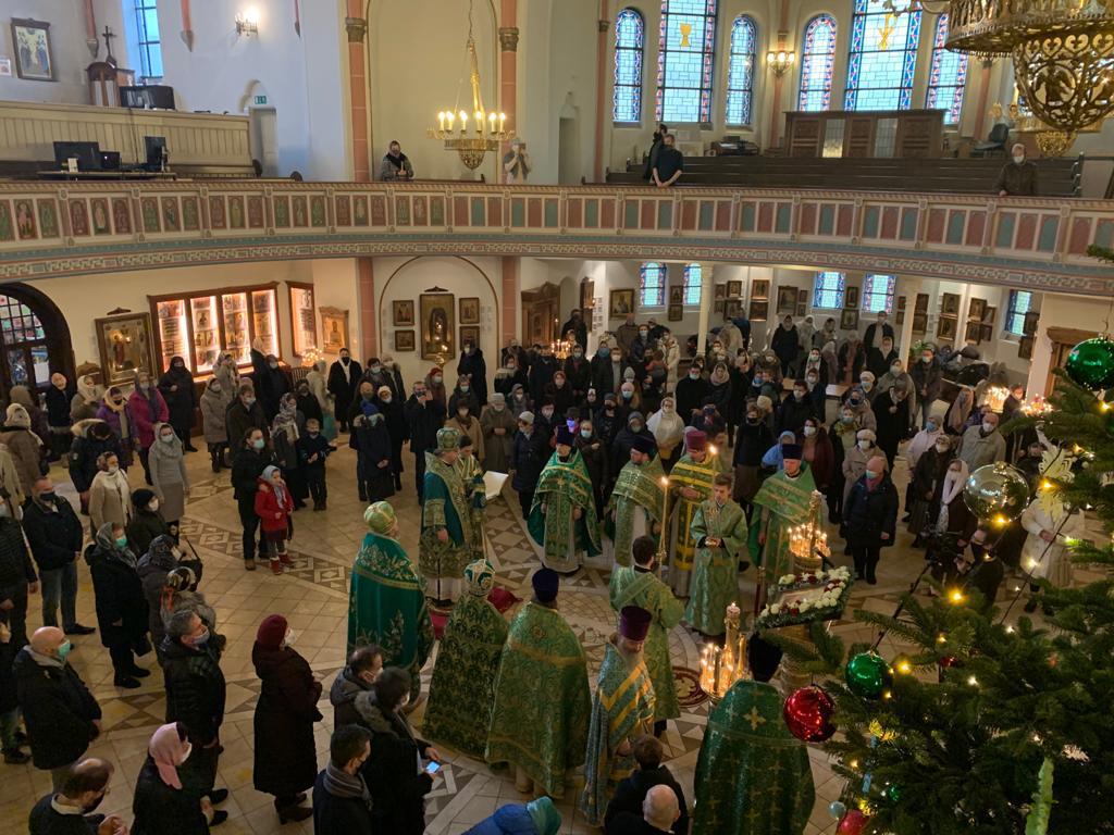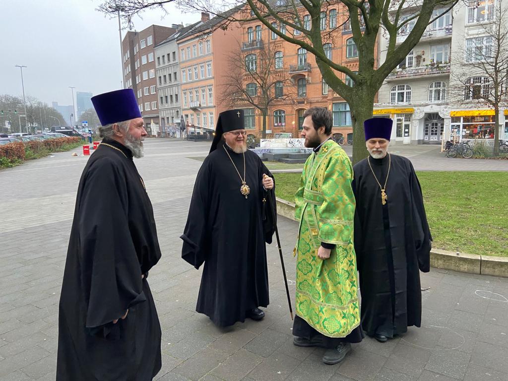 Его Высокопреосвященству сослужили благочинный Северного церковного округа протоиерей Борис Устименко, настоятель храма протоиерей Сергий Бабурин, протоиерей Александр Берташ (г. Бремен), протоиерей Дионисий Идевайн (г. Шверин), иерей Геннадий Сар (г. Люнебург), иерей Иоаким Линдберг (г. Гамбург), иерей Иоанн Сухоняк (г. Гамбург), священник Павел Бобров (г. Москва), протоиерей Валерий Федько (Единецкая епархия Православной Церкви Молдовы), диакон Арчил Чхиквадзе.