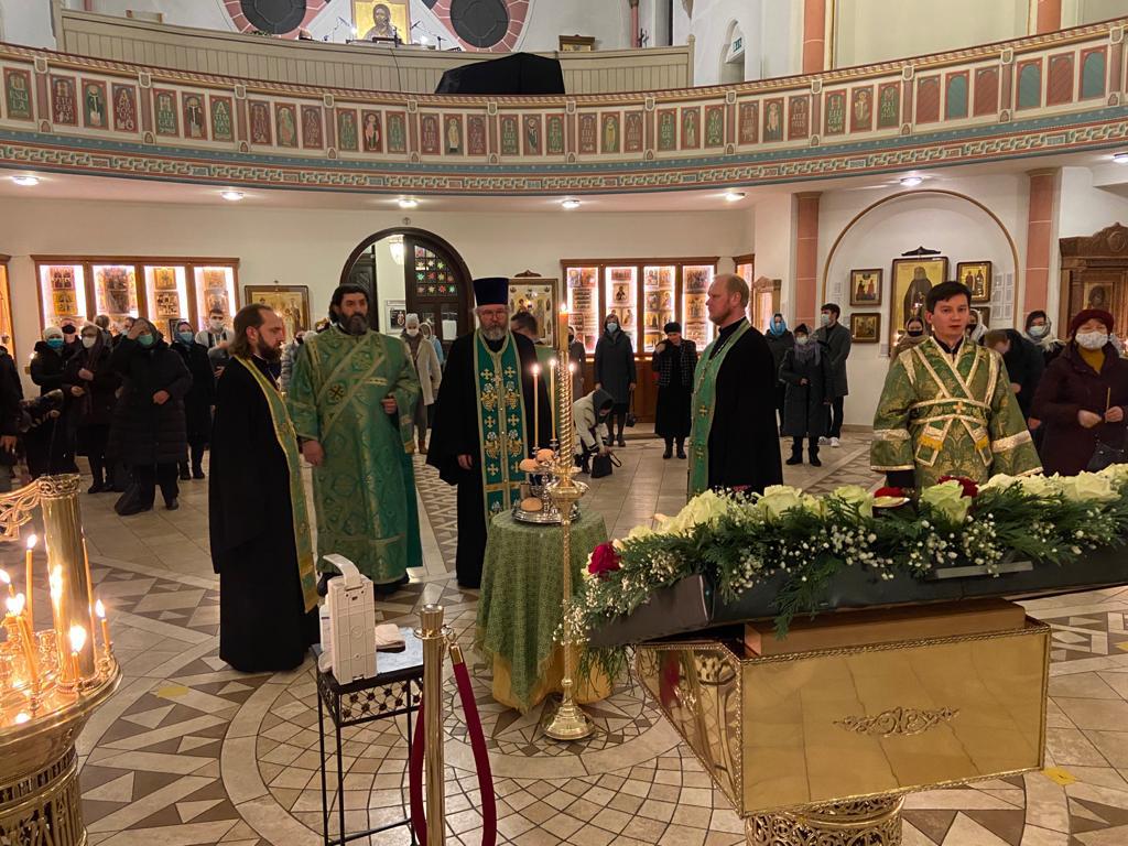 2 января 2021 года, в субботу пред Рождеством Христовым, день памяти святого праведного Иоанна Кронштадтского, архиепископ Подольский Тихон, управляющий Берлинско-Германской епархией возглавил служение Божественной литургии в храме во имя святого праведного Иоанна Кронштадтского в г. Гамбурге. Накануне правящий архиерей совершил в храме всенощное бдение.