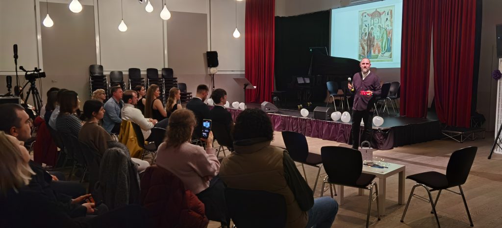 На творческом вечере 15.02.2024 молодёжное движение „Сретение“ отпраздновало сразу три праздника – Сретение Господне, Всемирный день православной молодёжи и свои „именины“. Двуязычная (рус./нем.) программа состояла из разнообразных творческих выступлений, игр и танцев. На вечере также присутствовали настоятель храма св. прав. Иоанна Кронштадского в Гамбурге, прот. Сергий Бабурин и настоятель храма св. вмч. Дмитрия Солунского в г. Шверин, прот. Дионисий Идавайн.