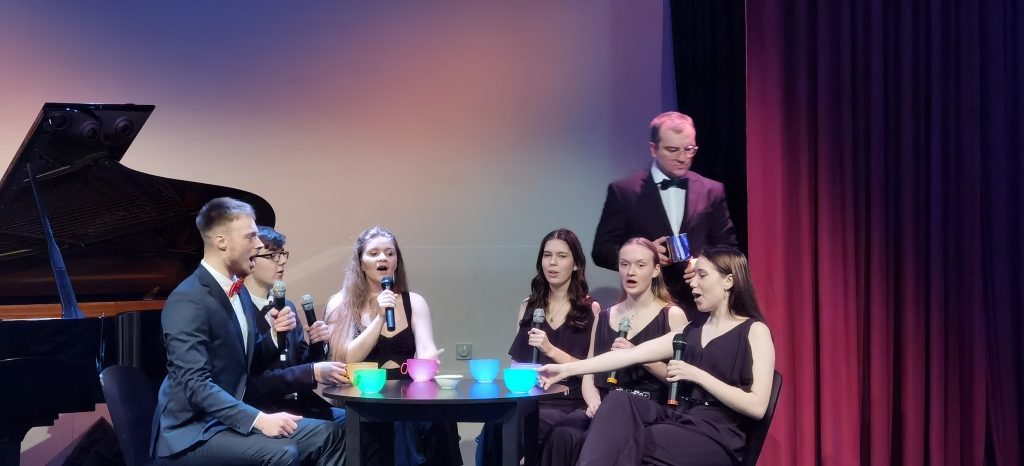 Игры, подготовленные Мариной Симоновой, внесли в этот вечер движение, веселье и непринуждённость. Благодаря этому знакомство и общение между ребятами становилось лёгким и приятным. Познавательный компонент в творческий вечер внесла Анна Виниченко своим интерактивным квестом на тему Сретения для комадной игры. В перерывах была возможность подкрепиться угощениями с общего стола. Особо приятным местом для чаепития оказались также „столики вдохновения“, где можно было найти для себя вдохновляющую цитату или оставить вдохновляющий отзыв организаторам. В завершение вечера Ксения Шлайхер разучила с участниками вечера два групповых танца, которые дали всем собравшимся почуствовать частичку той радости, которая всех ожидает на предстоящем „Весеннем балу“ 26.05.2024. Все „активные участники“ в конце получили цветы и сладкий сюрприз с мотивирующей фразой: „Инициатива награждаема!“