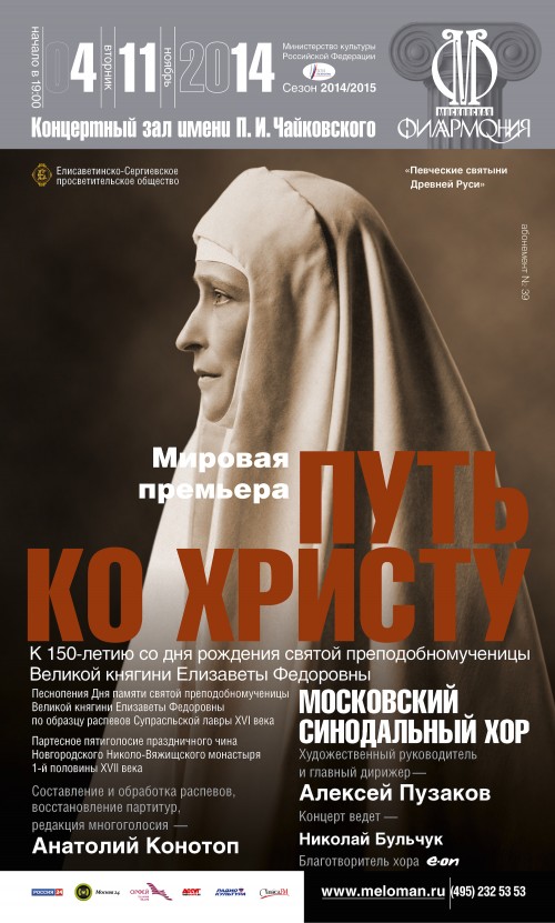 В рамках празднования 150 летия со дня рождения святой преподномученицы княгини Елизаветы Федоровны в Москве состоится мировая премьера «Путь ко Христу». Дешифровка, составление транснотаций и обработка — профессор Анатолий Конотоп.