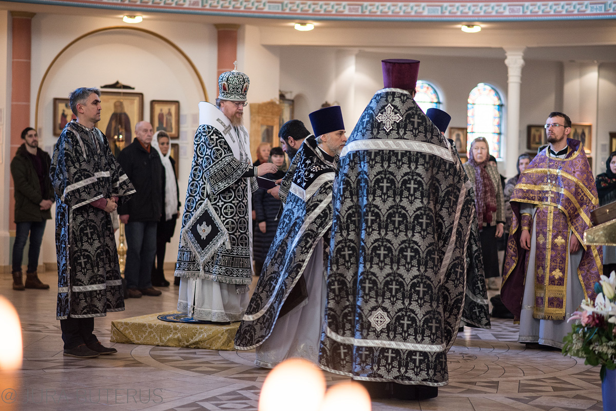 Его Высокопреосвященству сослужили настоятель храма протоиерей Сергий Бабурин, протоиерей Дионисий Идевайн, иерей Геннадий Саракапыт, иерей Иоанн Сухоняк, диакон Арчил Чхиквадзе.