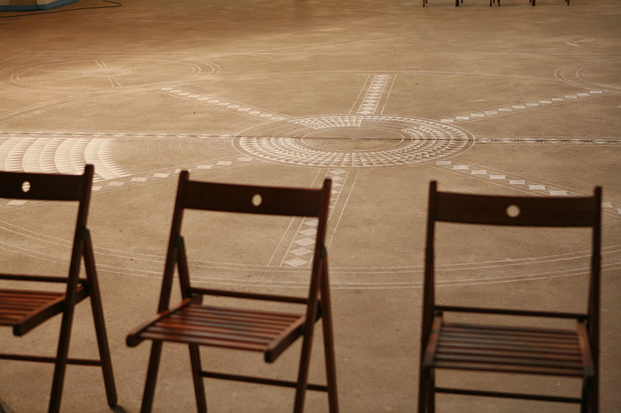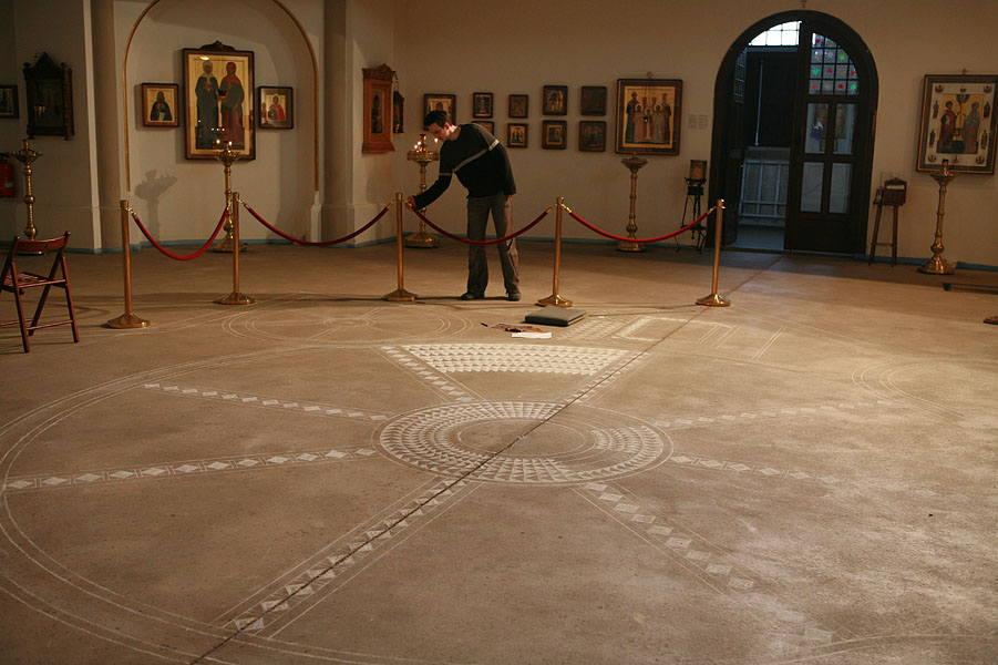 С помощью маркера нанесен проект центральной части мозаики