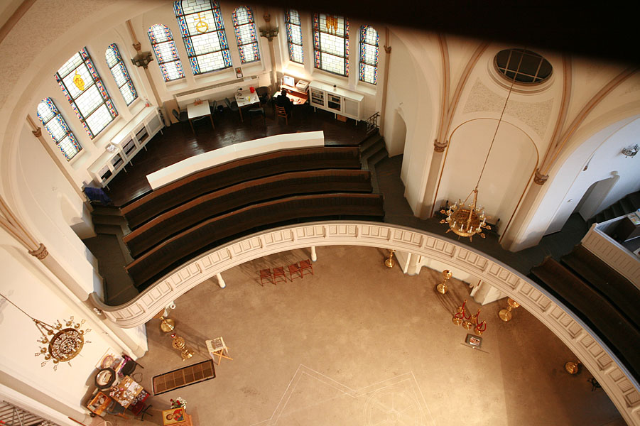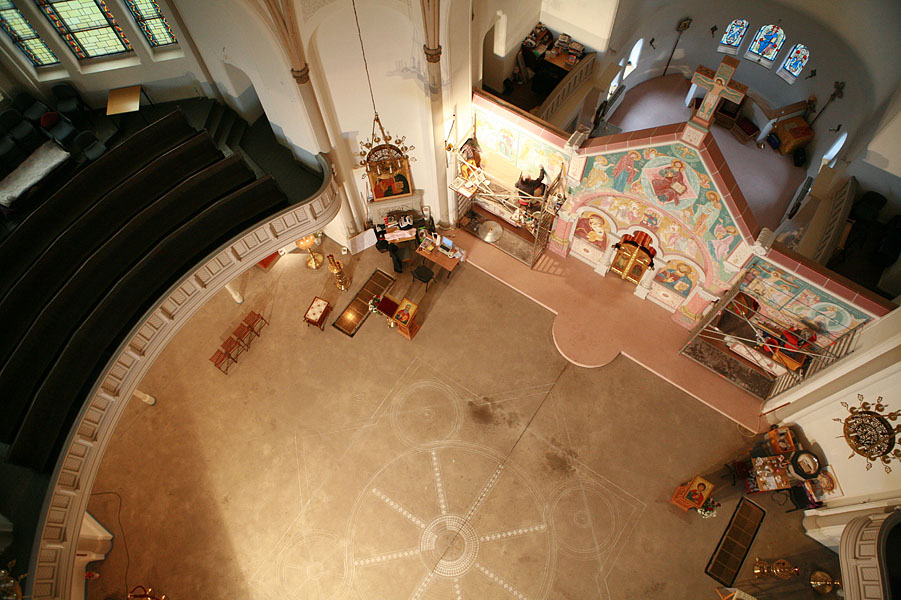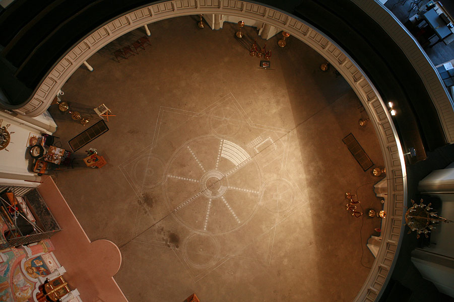 Фотографу пришлось забраться на купол, чтобы проект мозаичного пола можно было увидеть с высоты птичьего полета