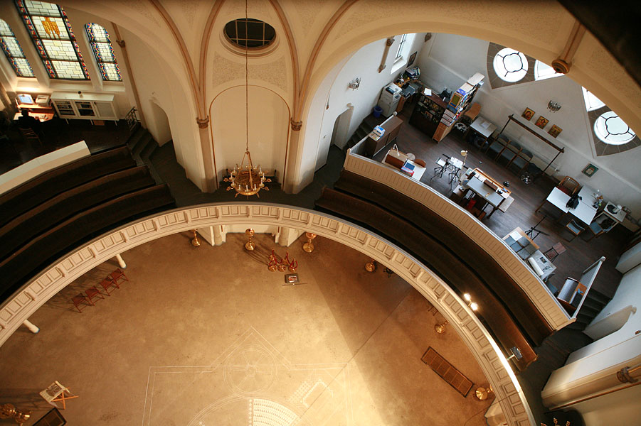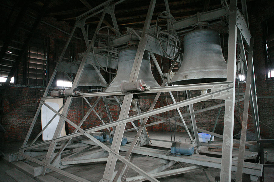Колокола в куполе храма приводятся в движение сложной электро-механической машиной