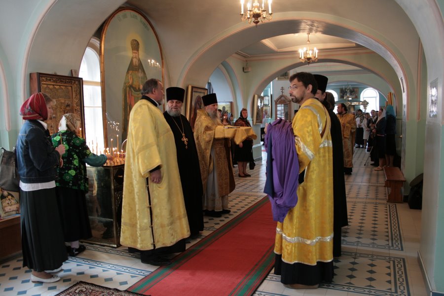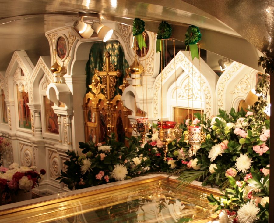 В храме были собраны иконы и кресты, пожертвованные св. пр. Иоанну, и его личные пожертвования обители. Среди них самыми ценными были — серебряный ковчег с мощами прп. Сергия Радонежского и прп. Александра Свирского.
