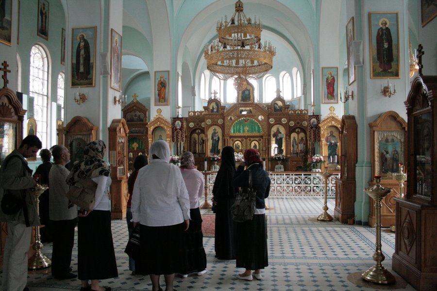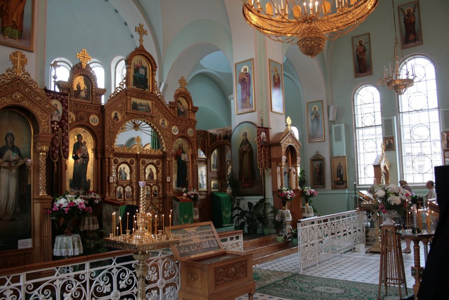 Этот храм, как и весь монастырь, построен по плану и указаниям архитектора Н. Н. Никонова.