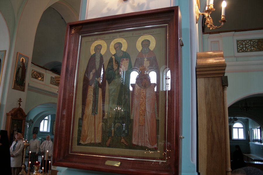 Среди «новых святынь» обители особо нужно отметить икону св. пр. Иоанна с вложенной в ее киот епитрахилью отца Иоанна, а также чудесным образом обновившуюся икону Покрова Божьей Матери. Икона эта была пожертвована монастырю храмом святителя Николая на Большеохтинском кладбище. Вернее, она была выбрана настоятельницей игуменьей Софией — к изумлению служителей сего храма, потому что икона была такая темная, что на ней с трудом удавалось различить фигуру Божьей Матери, держащей омофор.