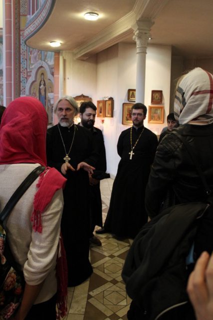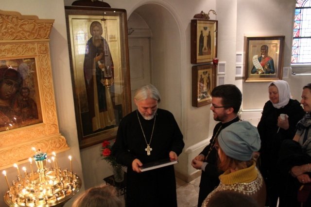 В праздник Покрова Божией Матери в храме во имя святого Иоанна Кронштадтского в Гамбурге была совершена Божественная литургия, после которой состоялось знакомство молодежи с настоятелем храма протоиереем Сергием Бабуриным. Отец Сергий рассказал об истории храма, особенностях его архитектуры и организации внутреннего пространства, наиболее примечательных иконах, жизни и деятельности приходской общины.