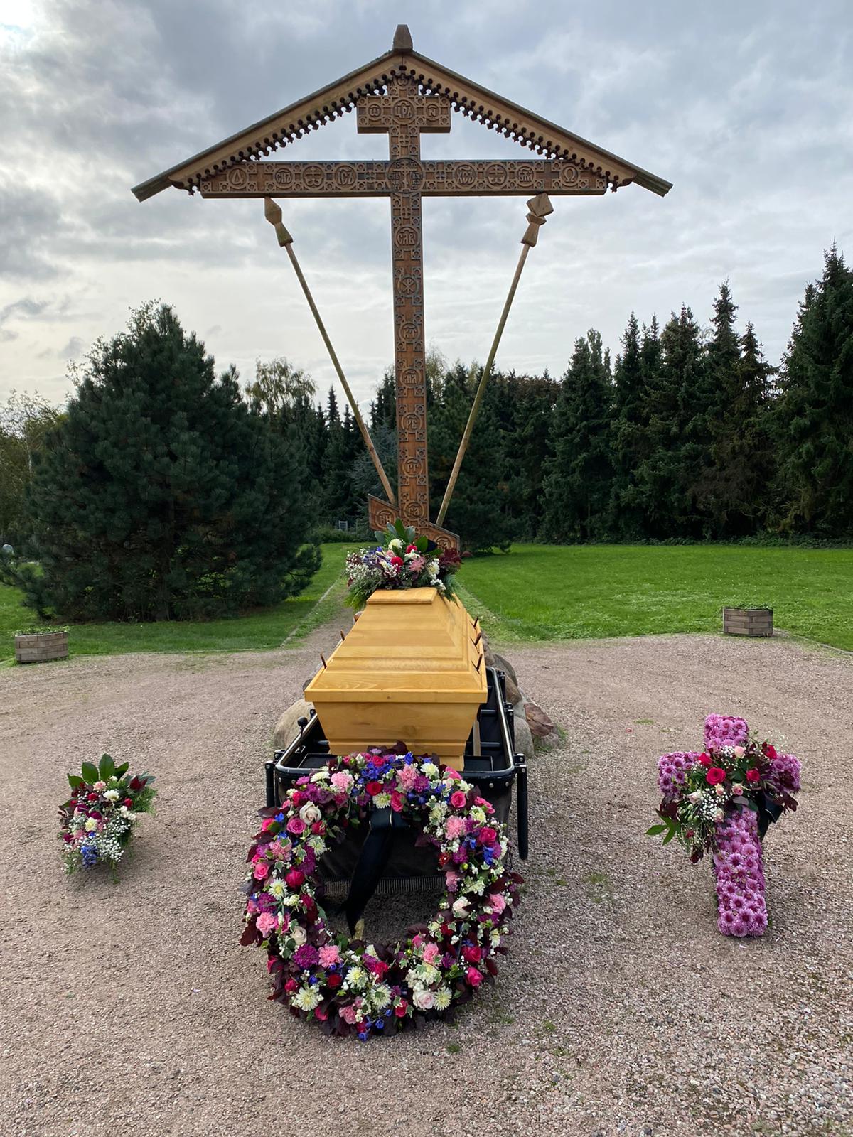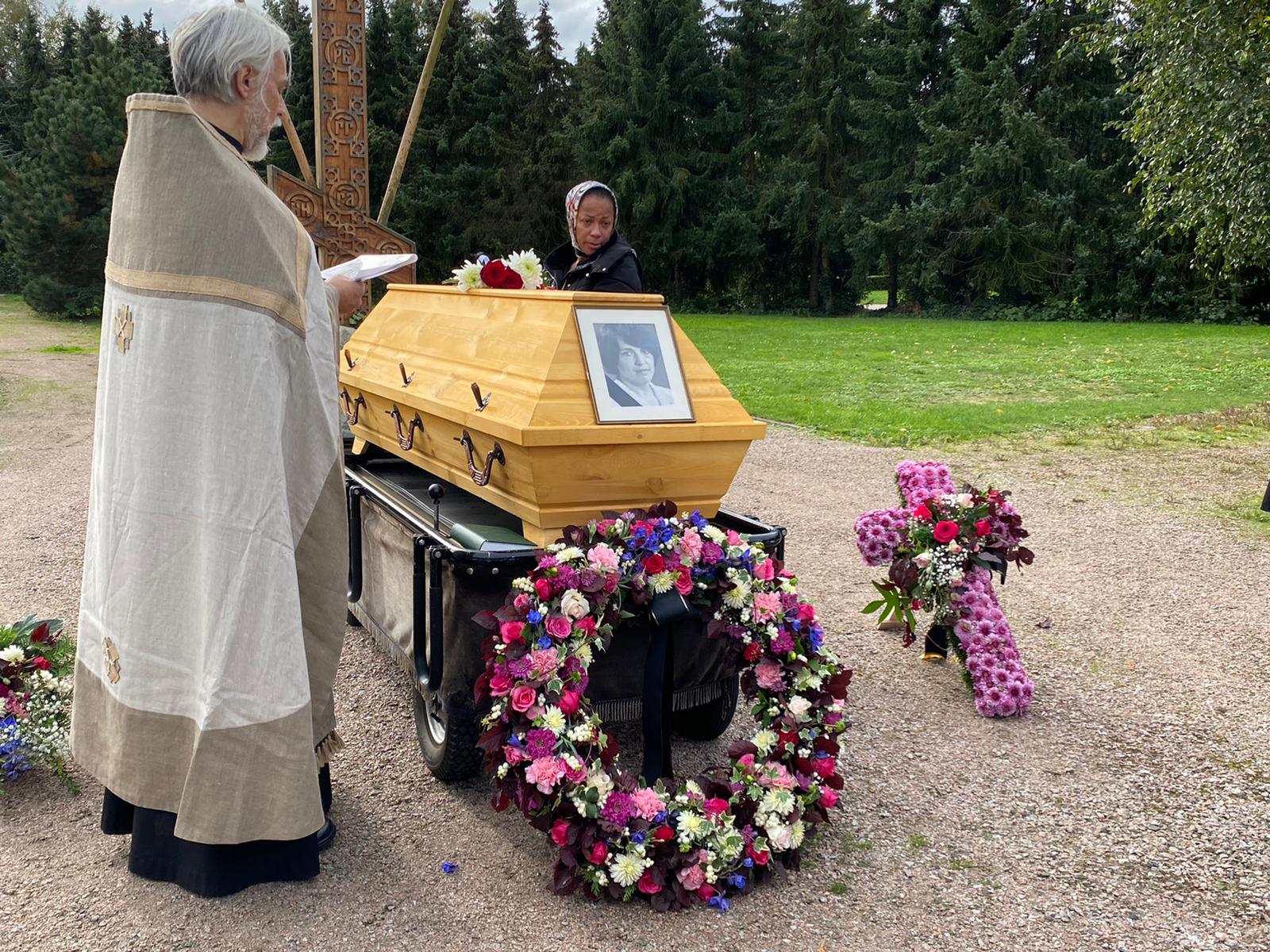 Отпевание Евгении состоялось 14 октября в праздник Покрова Пресвятой Богородицы на православном кладбище Гамбурга в 12.00. Отпевание было совершено под открытым небом. К сожалению, из — за продолжающихся карантинных ограничений, поминальной трапезы не было
