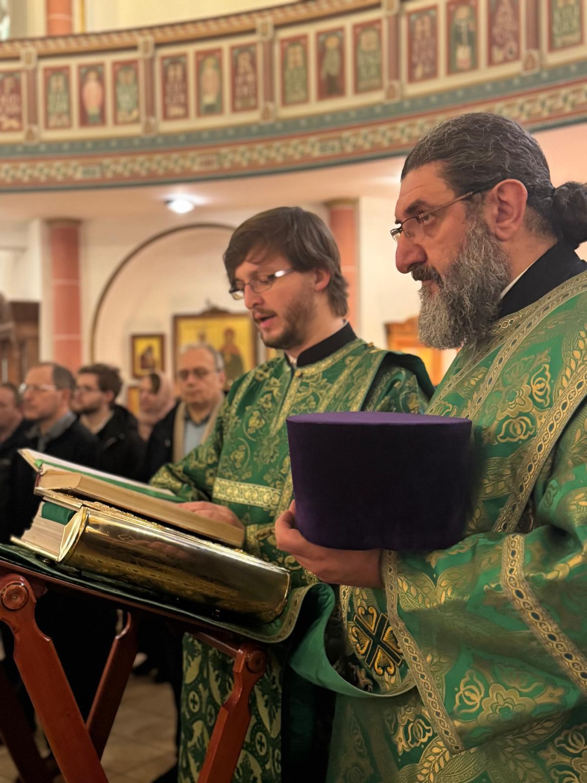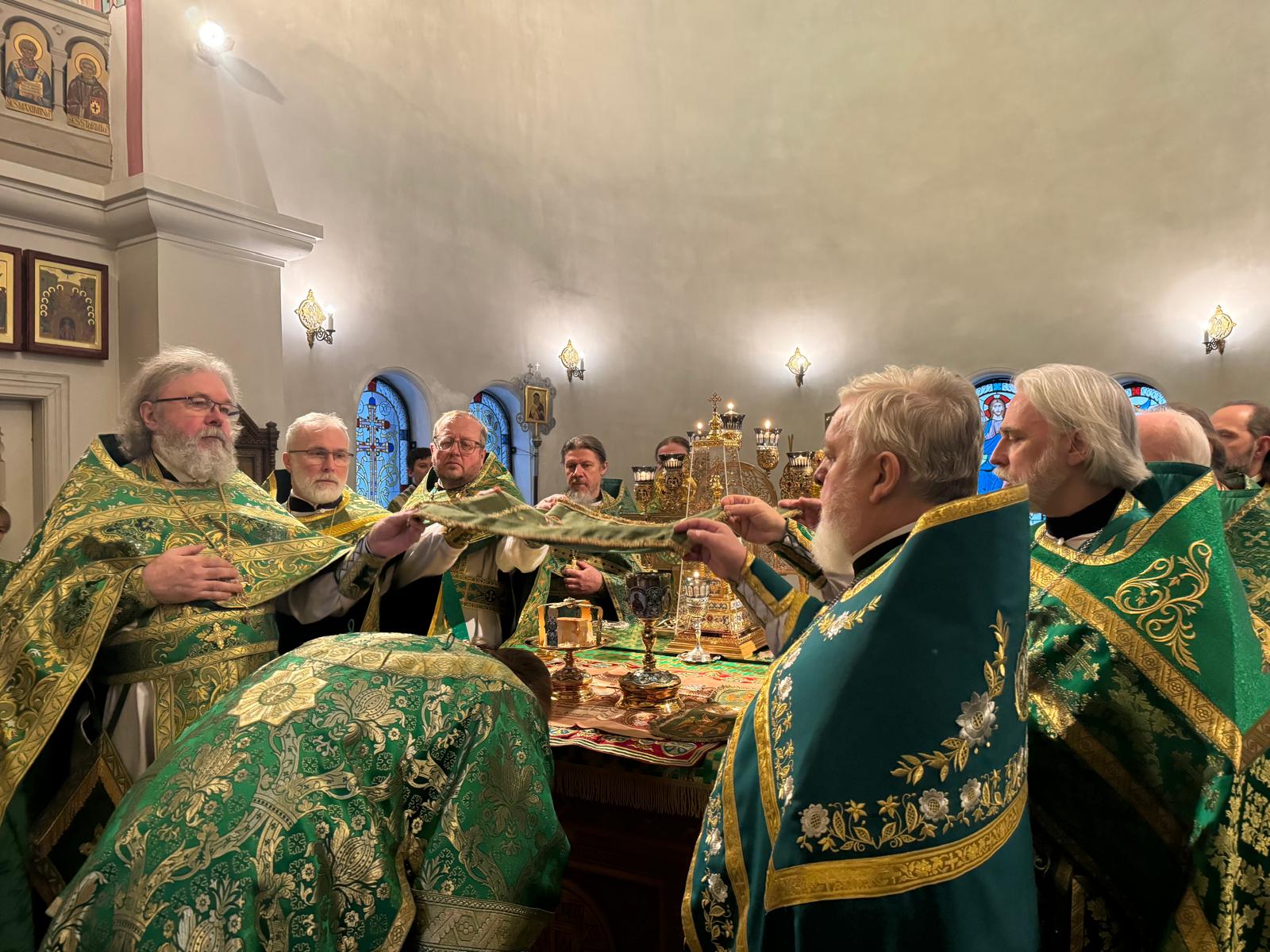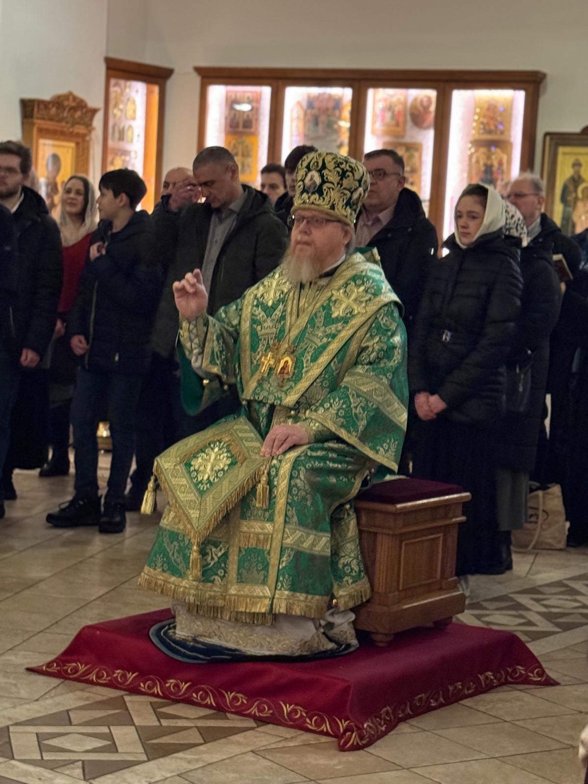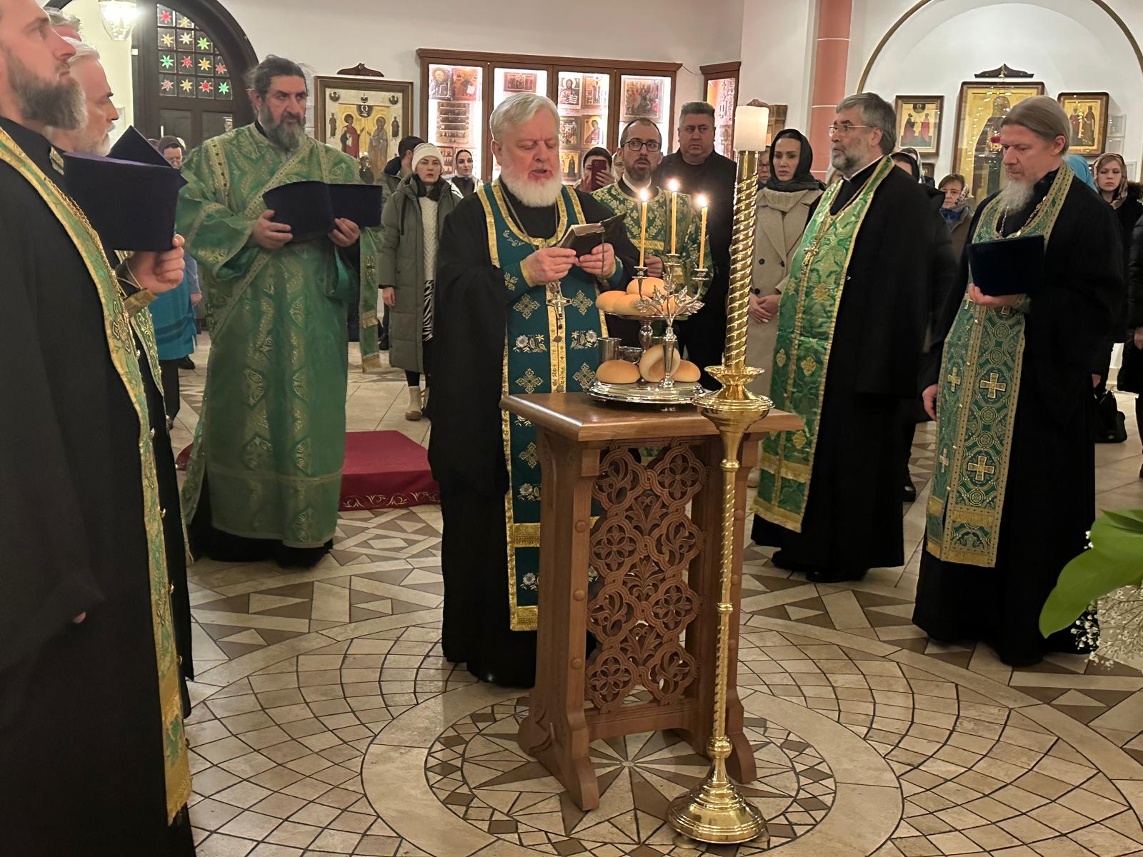 Накануне архиепископ Тихон возглавил в храме служение всенощного бдения. Литию и освящение хлебов совершил благочинный Восточного округа протоиерей Георгий Антонюк.