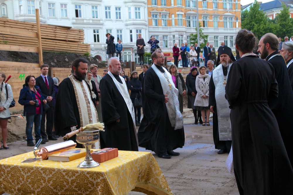Молебное пение с чином закладки камня посетили генеральные консулы Российской Федерации и Украины в Гамбурге, представители сената и общественных организаций города.