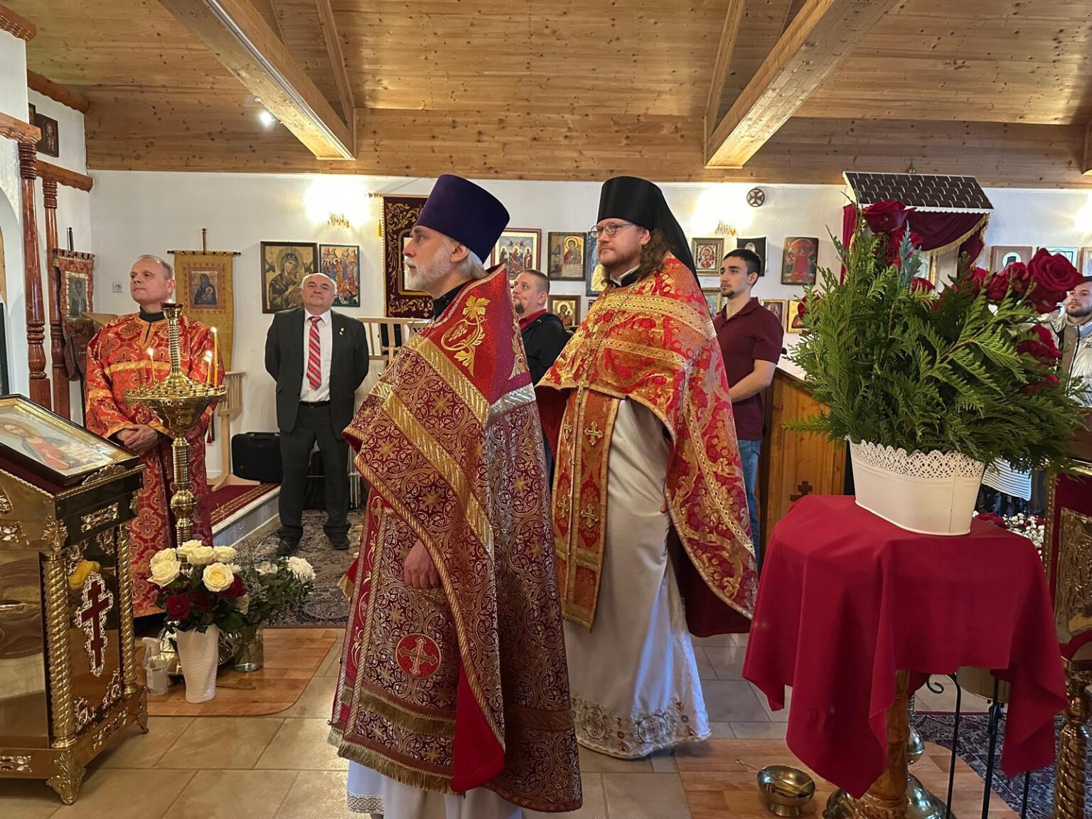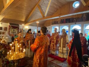 За всенощным бдением и Божественной литургией Преосвященным архипастырям сослужили благочинный Гамбургского округа протоиерей Сергий Бабурин, и. о. настоятеля прихода иеромонах Серафим (Станхардт), иеромонах Иларион (Резниченко), протодиакон Арчил Чхиквадзе, диакон Константин Лотихиус.