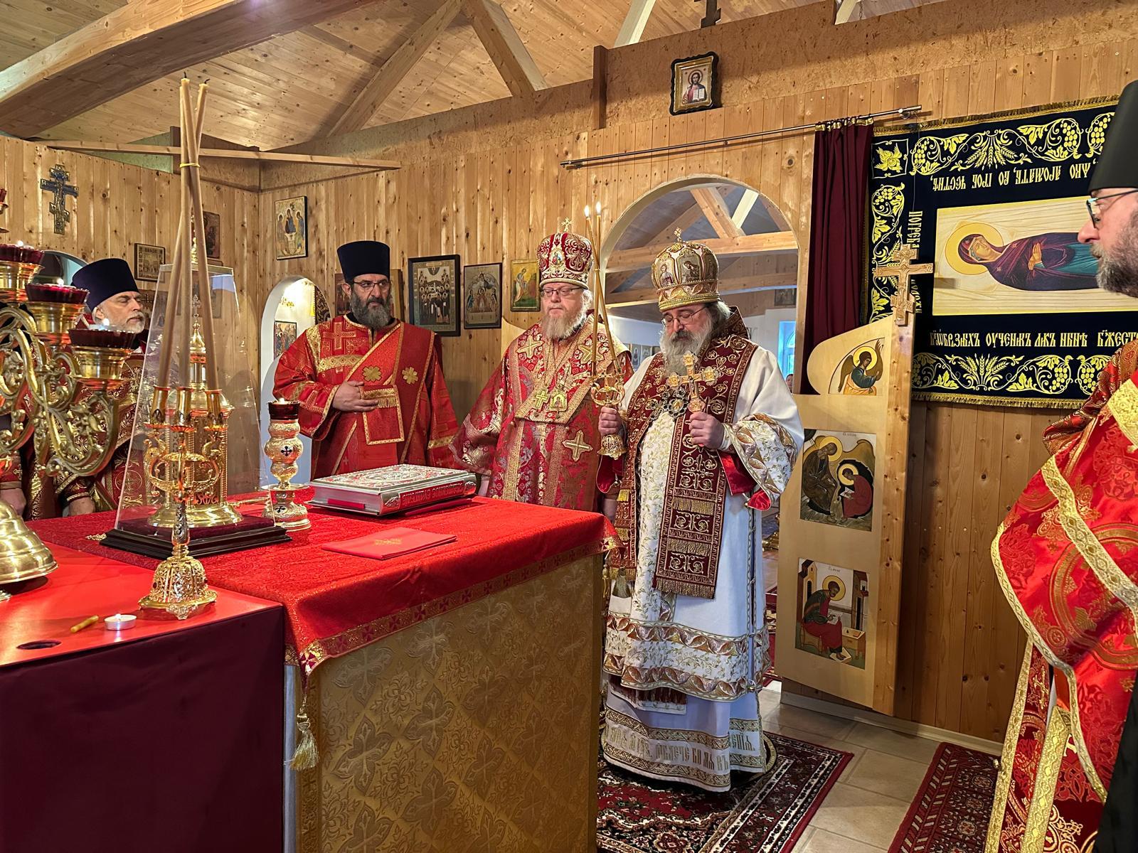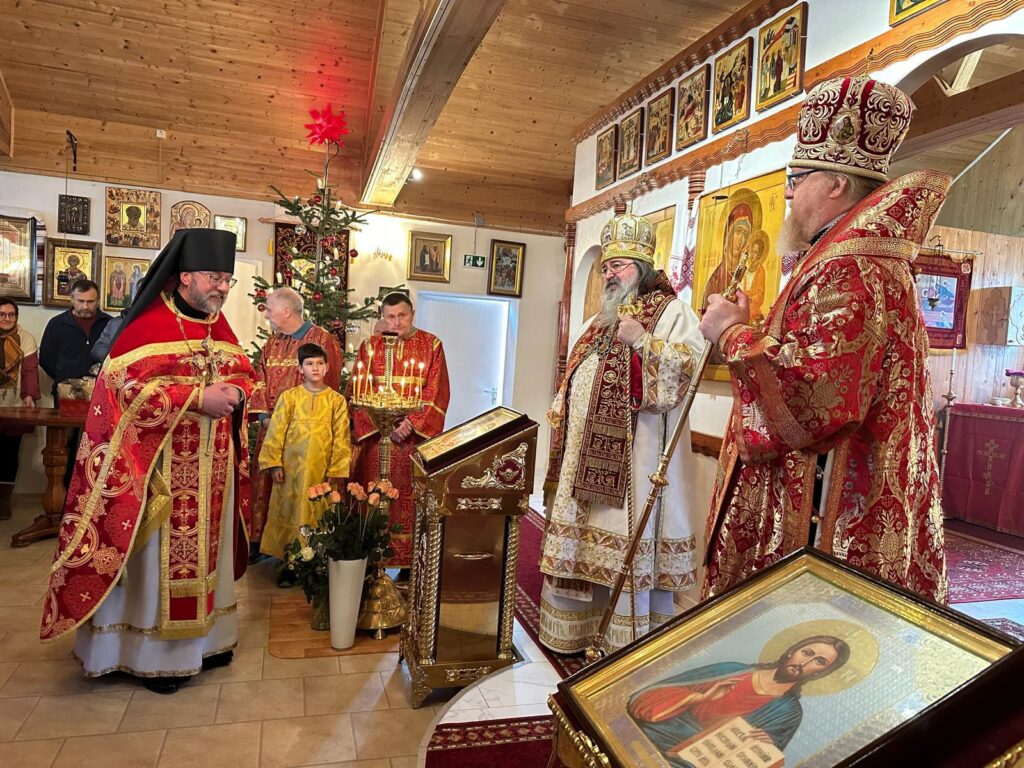 28 декабря 2025 года, в Неделю 29-ю по Пятидесятнице, святых праотец, день памяти священномученика Илариона, архиепископа Верейского, архиепископ Рузский Тихон, управляющий Берлинско-Германской епархией, в сослужении с архиепископом Гаагским и Нидерландским Елисеем совершил Божественную литургию в храме во имя священномученика Илариона в г. Лере (Нижняя Саксония, регион Восточная Фризия, расположен на границе с Голландией).