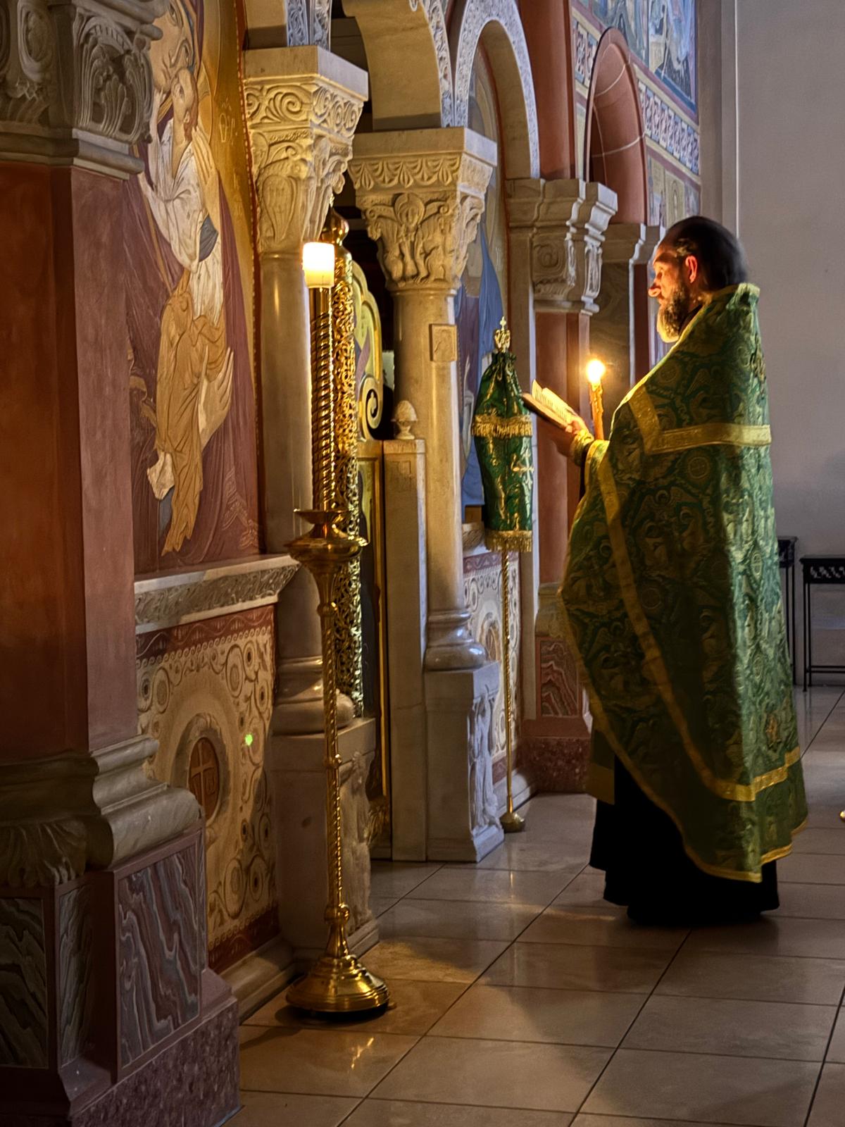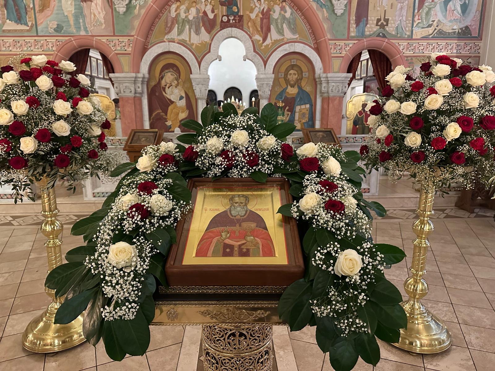 Церковь Русская прославляет сегодня святого Иоанна Кронштадтского, небесного покровителя сего храма. Он близок каждому из нас, родных ему по происхождению, но ещё более по вере. При обращении к нему в молитве или упоминании его имени душа исполняется духовной радости. Объясняется это тем, что отец Иоанн стремился всегда и во всём быть с Богом. Он постоянно пребывал в молитве. Призывая на помощь благодать Святого Духа, он спасал грешников от вечной погибели, горел любовью к людям. Свет любви, который излучал пастырь Христов, воссиял не только в нашем Отечестве, но и далеко за его пределами. «Явился еси людем Божиим наставник спасения, образ сострадания и духовнаго утешения: не точию бо пастве Кронштадтстей, но и всей Руси, отче Иоанне Богомудре, благодеяния источаеши», — поётся в каноне святому.