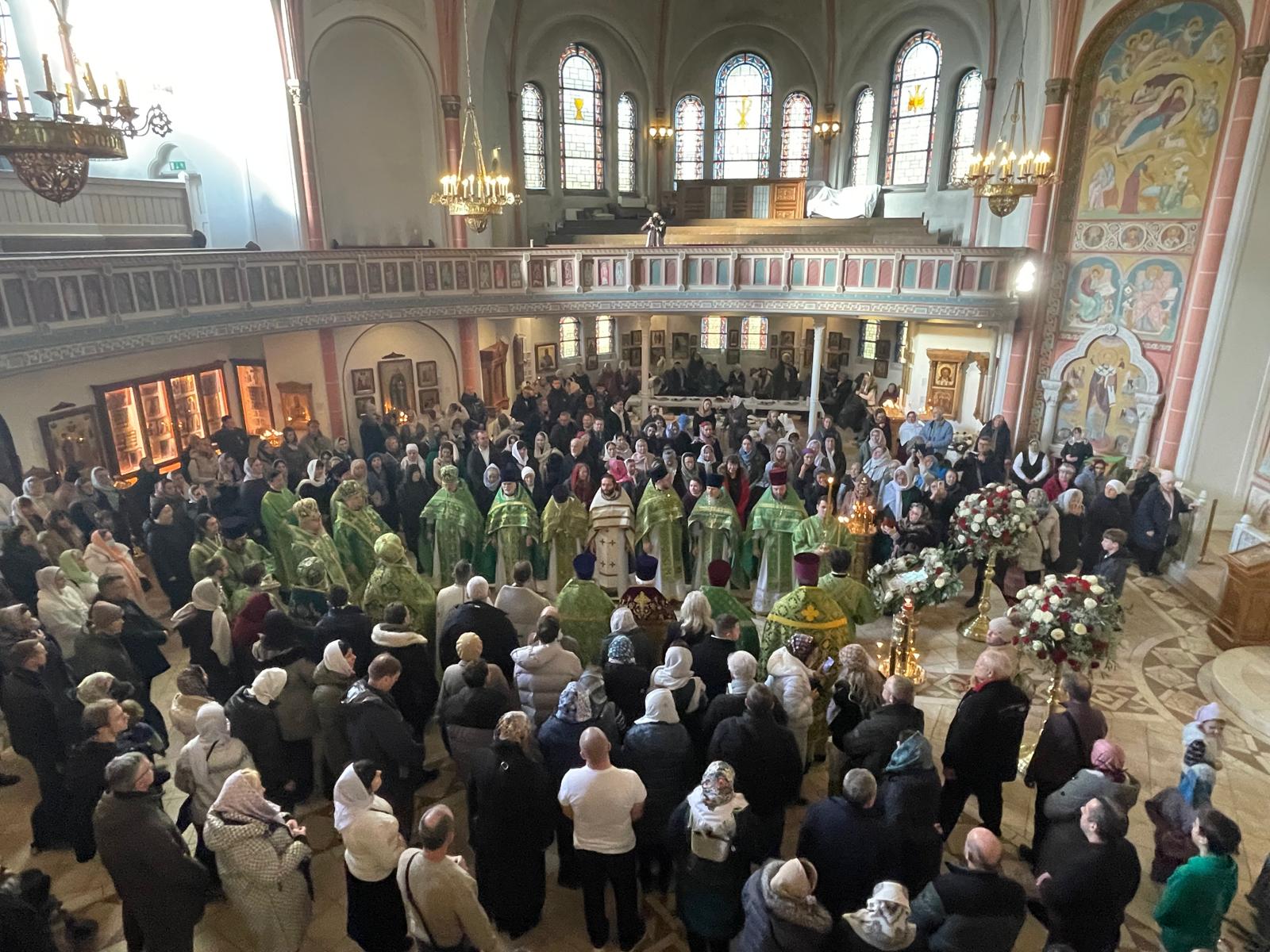 Его Высокопреосвященству сослужили: благочинный Восточного округа Георгий Антонюк, благочинный Баварско-Гессенского округа протоиерей Петр Степанов, благочинный Северного округа протоиерей Борис Устименко, благочинный Гамбургского округа и настоятель храма протоиерей Сергий Бабурин, протоиерей Иосиф Вовнюк (Гамбург, Германская епархия РПЦЗ), протоиерей Владимир Симонов (Киль), протиерей Сергий Бондарев (Копенгаген), протоиерей Синиша Вуясинович (Протојереј Синиша Вујасиновић) (Сербская Православня Церковь, Гамбург), протоиерей Крстин Апостолов (Болгарская Православная Церковь, София), иерей Иаков Щурм (Болгарская Православная Церковь, Гамбург), протоиерей Дионисий Идавайн (Шверин), иерей Геннадий Сар (Гамбург), протоиерей Александр Берташ (Бремен), иерей Владислав Азевс, протодиакон Арчил Чхиквадзе, диакон Александр Гасанов, диакон Ростислав Устименко.