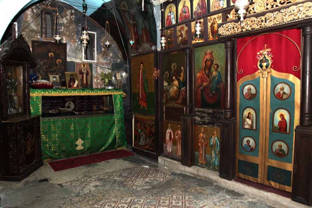 Недалеко от Александровского подворья расположен коптский храм, вблизи которого проживает часть местных коптов. Настоятель этого храма указал нам на лестницу, ступени которой вели вниз, под храм. Как оказалось, под коптским храмом располагались цистерны для хранения воды, сооруженные во времена Царицы Елены и сохранившиеся до наших дней.