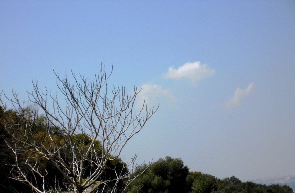 На территории монастыря установлены три шатра в память о трех кущах, которые апостолы хотели устроить для Иисуса Христа, Моисея и Илии. Именно эти кущи нам и напомнили три облака, паривших в тот момент на чистом голубом небе: одно крупное облако в центре и два помельче, по обе стороны и немного ниже центрального облака.