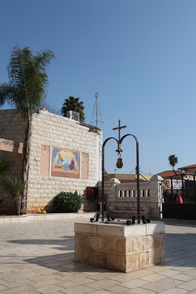 Пробираясь по улочкам Назарета, мы направились к месту, куда Пресвятая Дева ходила из дома за водой. На нем, в соответствии с апокрифическим преданием, совершилось первое Благовещение. На этом месте находится православный храм Архангела Гавриила, принадлежащий Иерусалимскому Патриархату. Из реликвий в этом храме сохранился сам источник и ступеньки, по которым спускалась Матерь Божия. Напившись воды из источника, мы продолжили свой путь по направлению к Кане Галилейской, которая находится в нескольких километрах от Назарета, между Назаретом и Фавором.