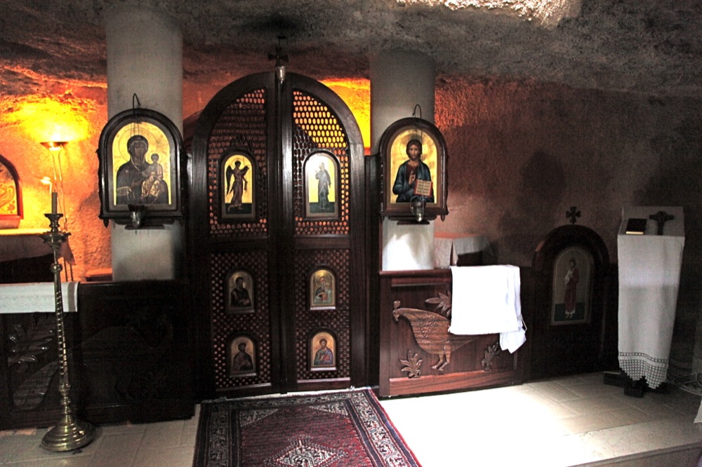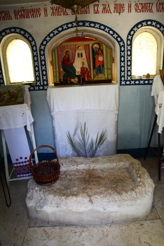 Заключительный день нашего паломничества по Святой Земле начался с поездки в селение Вифания, примыкающее к Иерусалиму на восточном склоне Елеонской горы. В настоящее время здесь расположена арабская деревня с мусульманским населением. Христианского населения здесь почти не осталось. Еще в древности здесь проходила дорога из Иерихона в Иерусалим. И все путники, направлявшиеся в Иерусалим, проходили этой дорогой. Господь часто бывал в Вифании, т.к. здесь жил Его друг Лазарь со своими сестрами Марфой и Марией. Теперь это место так и называется Лазария. Русский участок в Вифании, приобретенный Русской Миссией, принадлежит общине Воскресения Христова Русской Православной Церкви Заграницей. Здесь была организована школа-интернат для арабских девочек. В настоящий момент здесь обучается около 350 девочек. Сестра Марфа, приехавшая из Германии, является старшей сестрой в общине и директором школы. Мы были потрясены удивительным сочетанием. Райский уголок среди запущенного исламского квартала. Жизнерадостные арабские мусульманские девочки получают лучшее в этой местности образование. Руководство осуществляют православные монахини и во всем виден немецкий порядок и дисциплина. Главная святыня общины — византийский камень, благодаря которому было установлено место встречи Иисуса Христа, направлявшегося в Вифанию, с сестрами Лазаря Марией и Марфой. Во дворе Вифанской общины находится пещерная церковь св. Николая, в которой совершаются богослужения.