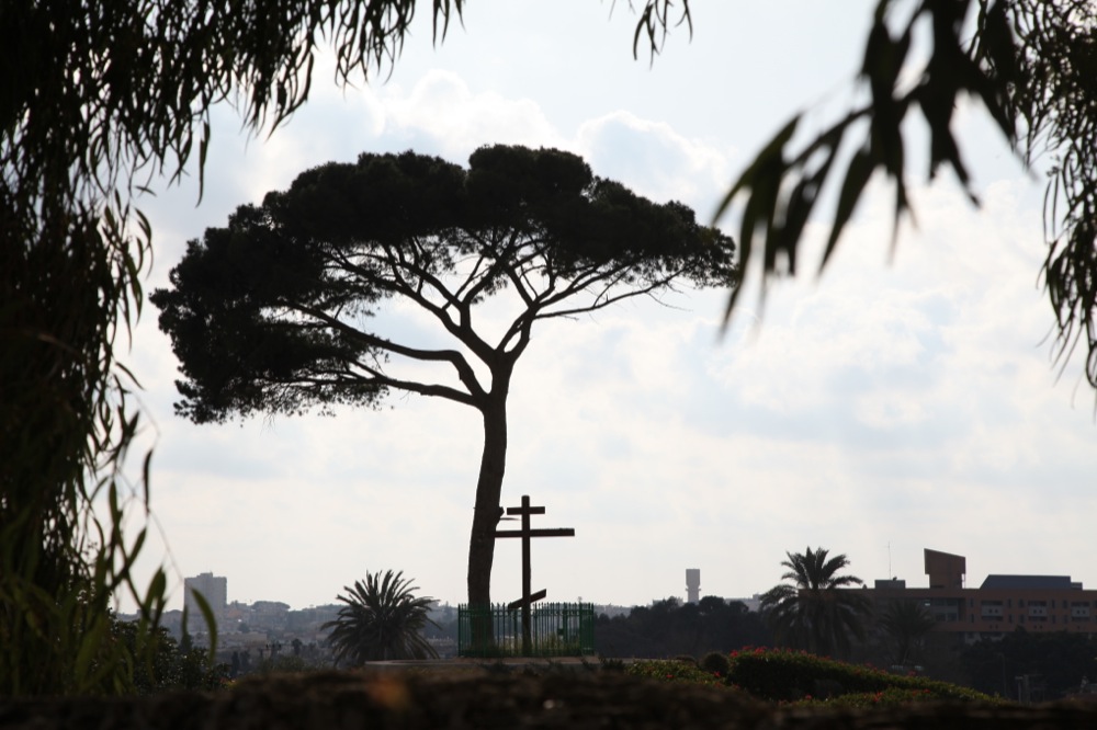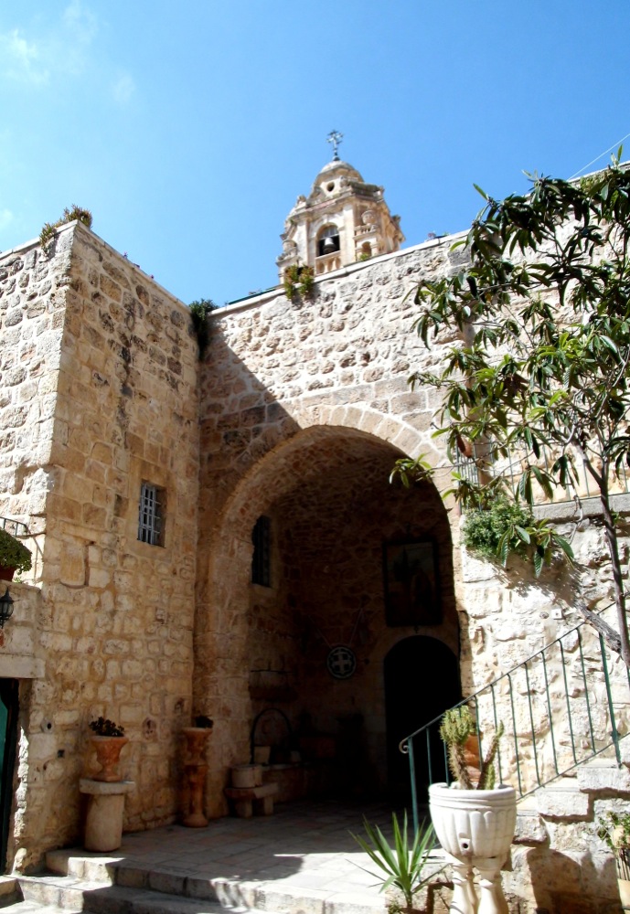 Следущим по пути нашего следования местом оказался один из самых древних и интересных монастырей Иерусалима — монастырь Креста. По преданию, именно здесь произрастало дерево, из которого в дальнейшем был сделан Крест Господень. Апокрифическая история этого дерева нашла свое отображение на стенах монастырского храма. В Средневековье монастырь был главным грузинским православным монастырем в Иерусалиме. В нем сохранились греко-грузинские росписи XII века, подновленные в ХVII веке. По преданию, на одной из колонн монастыря изображен Шота Руставели в монашеском облачении.